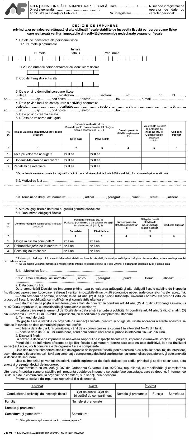 - Decizie de impunere - TVA si alte obligatii fiscale